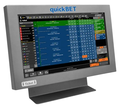 Platzsparend und doch das volle Spielvergnügen: Mit quick.BET wird die gesamte Angebotspalette von CBC-X auf engstem Raum bereitgestellt. Das System steht für hochqualitative Sport- und Livewetten und eröffnet allen Beteiligten ein unterhaltsames und profitables Sportwett-Business. Modernste Komponenten stellen einen reibungslosen Ablauf der Sport- und Livewettannahme sicher, die Wettabgabe funktioniert intuitiv und unkompliziert. Das Gerät kann sofort in Betrieb genommen werden.